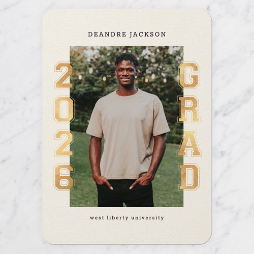 Celebrate the new graduate with this unique graduation announcement. Personalize with the graduate's name and the event details.