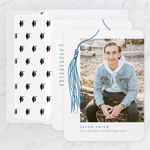 Celebrate the new graduate with this unique graduation announcement. Personalize with the graduate's name and the event details.