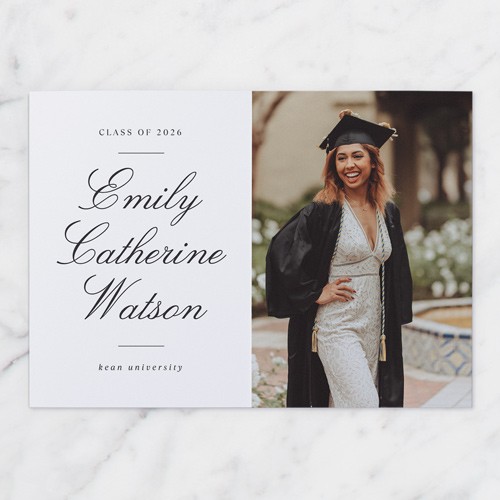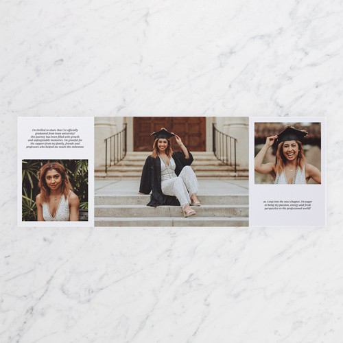 Celebrate the new graduate with this unique graduation announcement. Personalize with the graduate's name and the event details.