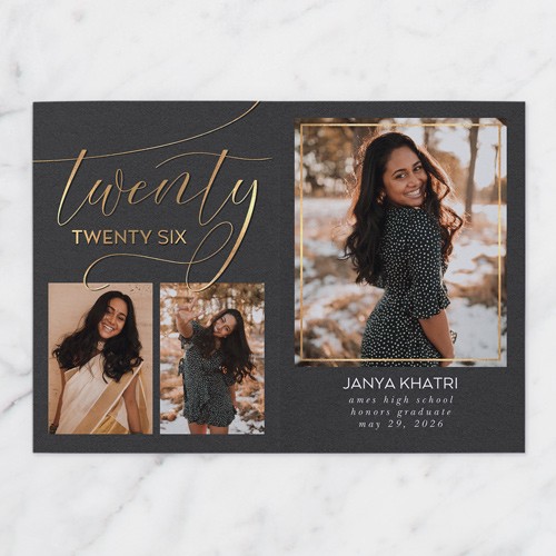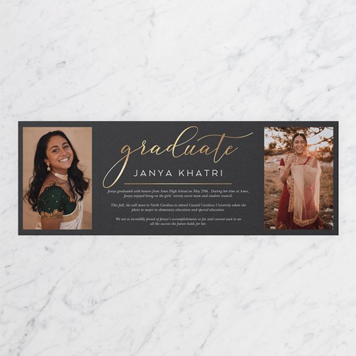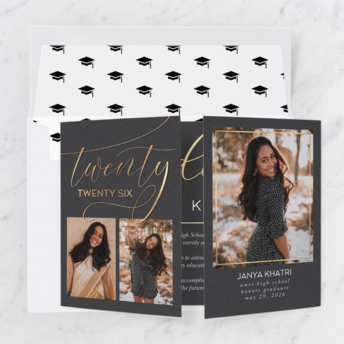 Let your Graduate’s story unfold with this unique card that opens up from the middle to reveal your photos. Enjoy more room for photos and text than a standard card.