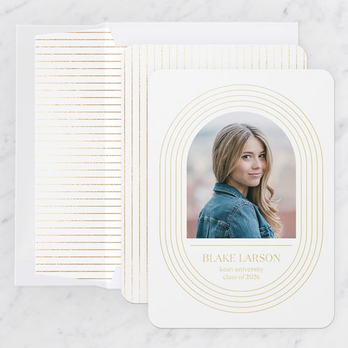 Celebrate the new graduate with this unique graduation announcement. Personalize with the graduate's name and the event details.