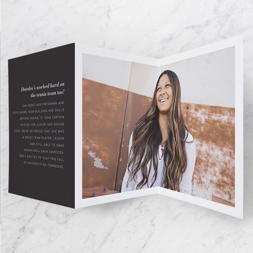 Celebrate the new graduate with this unique graduation announcement. Personalize with the graduate's name and the event details.