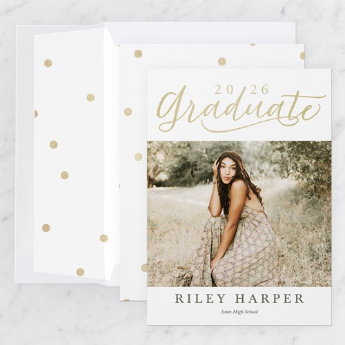 Celebrate the new graduate with this unique graduation announcement. Personalize with the graduate's name and the event details.