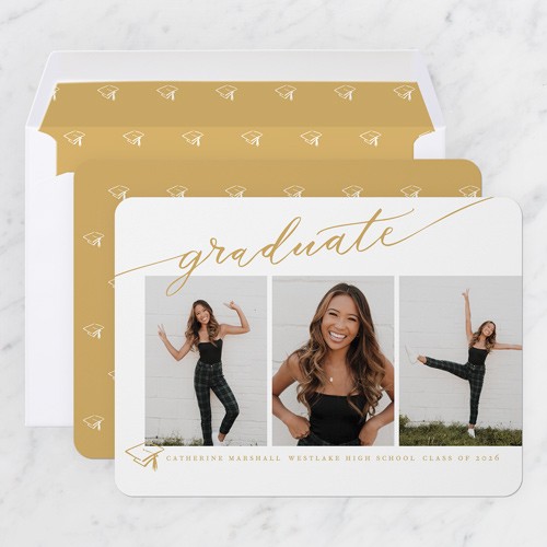 Celebrate the new graduate with this unique graduation announcement. Personalize with the graduate's name and the event details.
