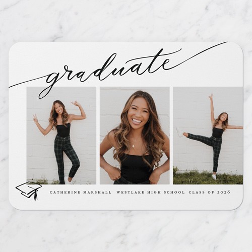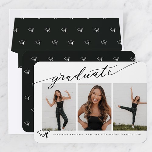 Celebrate the new graduate with this unique graduation announcement. Personalize with the graduate's name and the event details.
