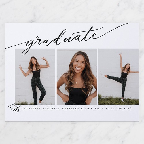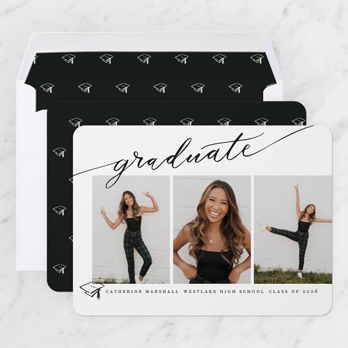 Celebrate the new graduate with this unique graduation announcement. Personalize with the graduate's name and the event details.