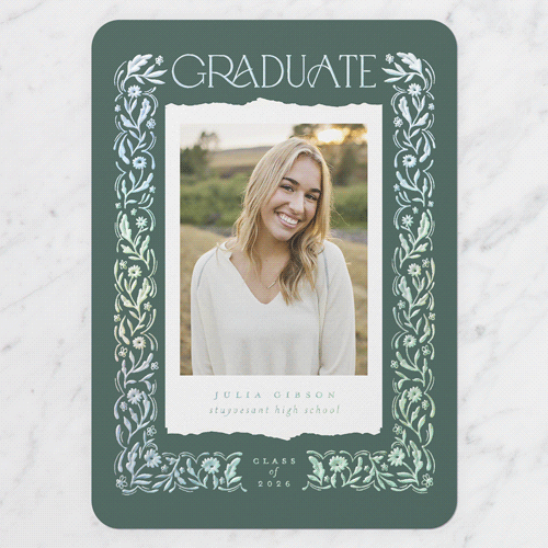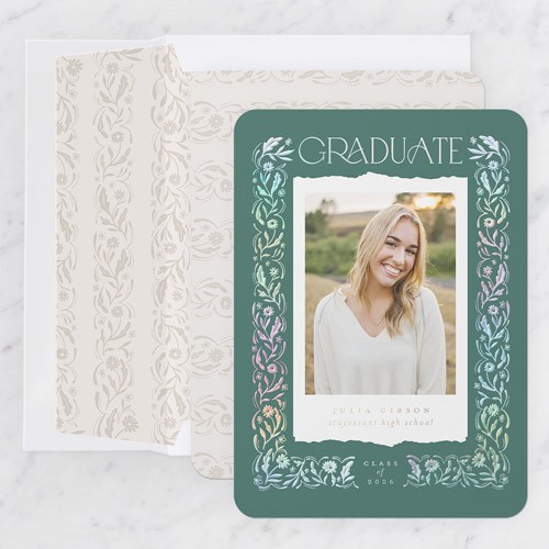 Celebrate the new graduate with this unique graduation announcement. Personalize with the graduate's name and the event details.