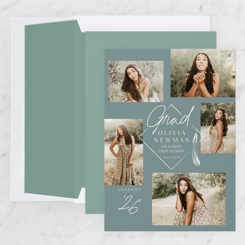 Celebrate the new graduate with this unique graduation announcement. Personalize with the graduate's name and the event details.