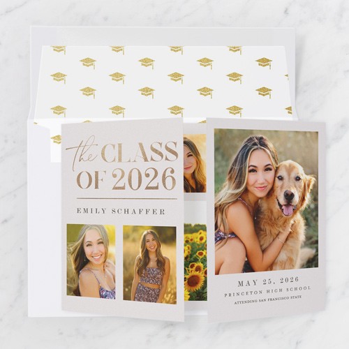 Let your Graduate’s story unfold with this unique card that opens up from the middle to reveal your photos. Enjoy more room for photos and text than a standard card.