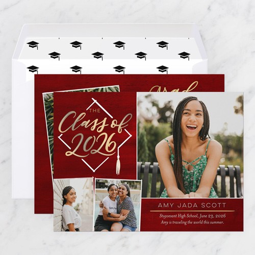 Celebrate the new graduate with this unique graduation announcement. Personalize with the graduate's name and the event details.
