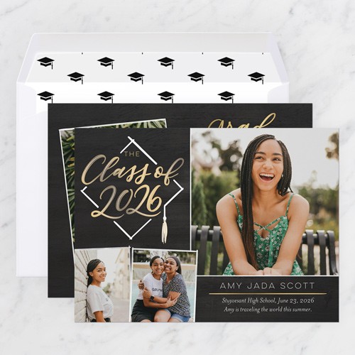 Celebrate the new graduate with this unique graduation announcement. Personalize with the graduate's name and the event details.