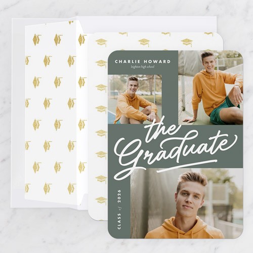 Celebrate the new graduate with this unique graduation announcement. Personalize with the graduate's name and the event details.