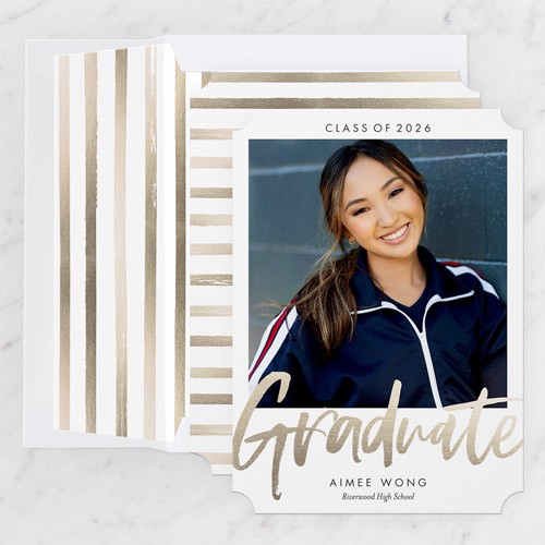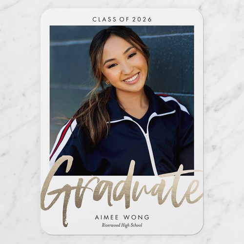 Celebrate the new graduate with this unique graduation announcement. Personalize with the graduate's name and the event details.