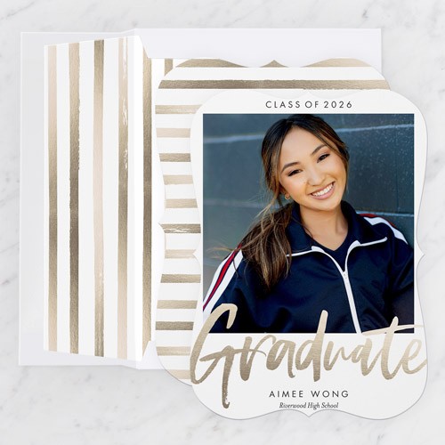 Celebrate the new graduate with this unique graduation announcement. Personalize with the graduate's name and the event details.