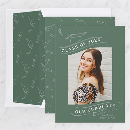 Celebrate the new graduate with this unique graduation announcement. Personalize with the graduate's name and the event details.