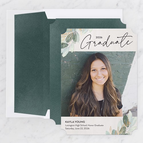 Celebrate the new graduate with this unique graduation announcement. Personalize with the graduate's name and the event details.