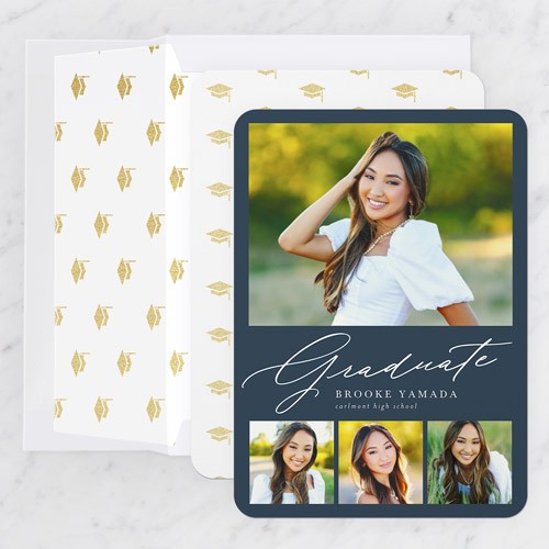 Celebrate the new graduate with this unique graduation announcement. Personalize with the graduate's name and the event details.