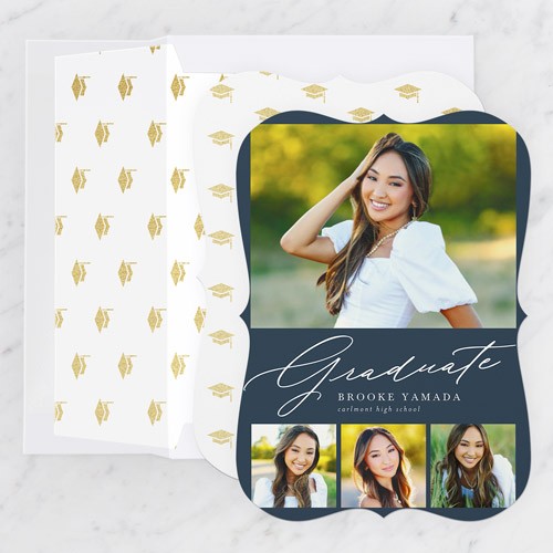 Celebrate the new graduate with this unique graduation announcement. Personalize with the graduate's name and the event details.