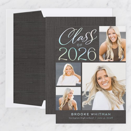 Celebrate the new graduate with this unique graduation announcement. Personalize with the graduate's name and the event details.
