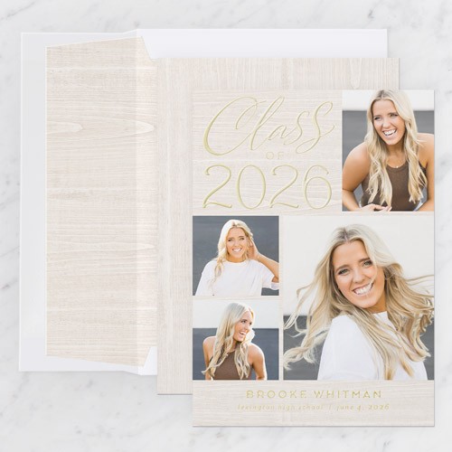 Celebrate the new graduate with this unique graduation announcement. Personalize with the graduate's name and the event details.