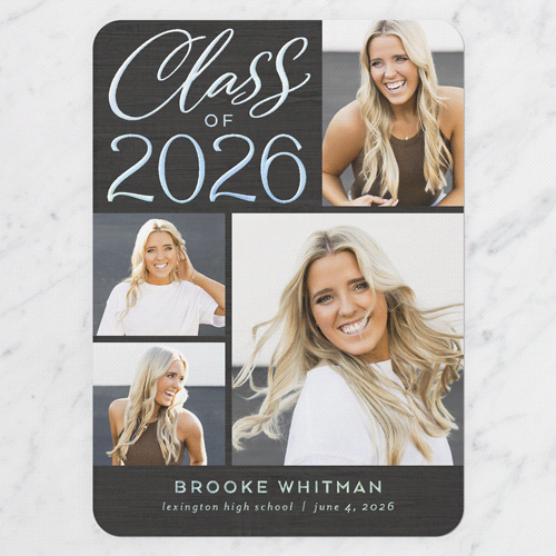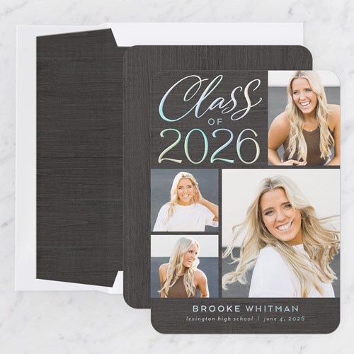 Celebrate the new graduate with this unique graduation announcement. Personalize with the graduate's name and the event details.