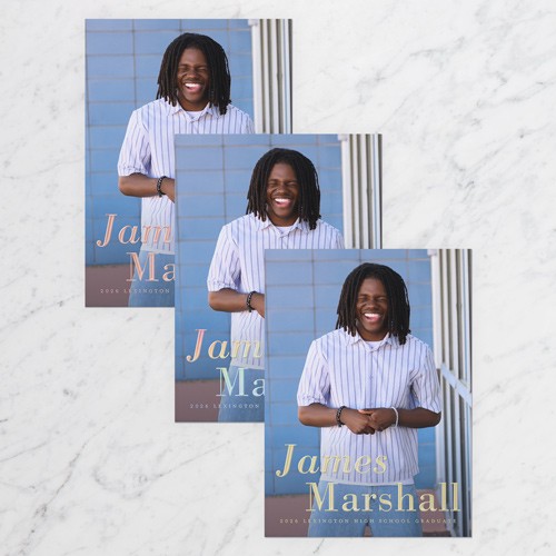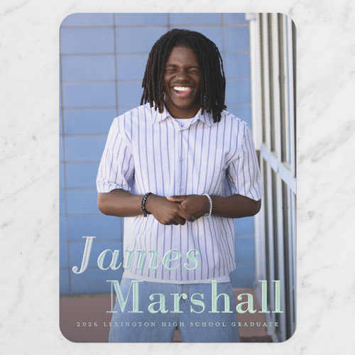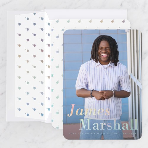 Celebrate the new graduate with this unique graduation announcement. Personalize with the graduate's name and the event details.