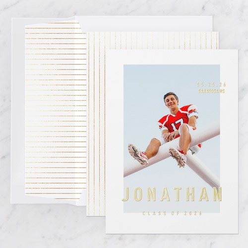 • Illuminate your card with real foil in a raised texture for a premium finish. Personalize your name or text in stunning foil.