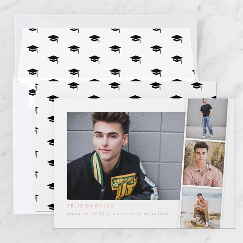 Celebrate the new graduate with this unique graduation announcement. Personalize with the graduate's name and the event details.