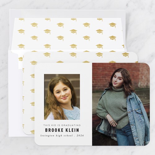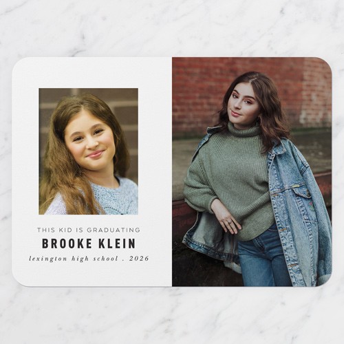 Celebrate the new graduate with this unique graduation announcement. Personalize with the graduate's name and the event details.