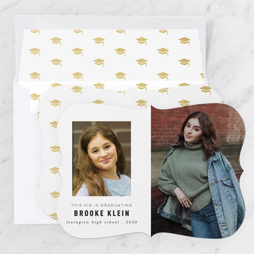 Celebrate the new graduate with this unique graduation announcement. Personalize with the graduate's name and the event details.