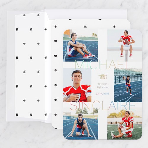 Celebrate the new graduate with this unique graduation announcement. Personalize with the graduate's name and the event details.