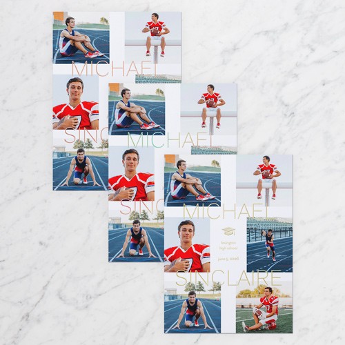 Celebrate the new graduate with this unique graduation announcement. Personalize with the graduate's name and the event details.