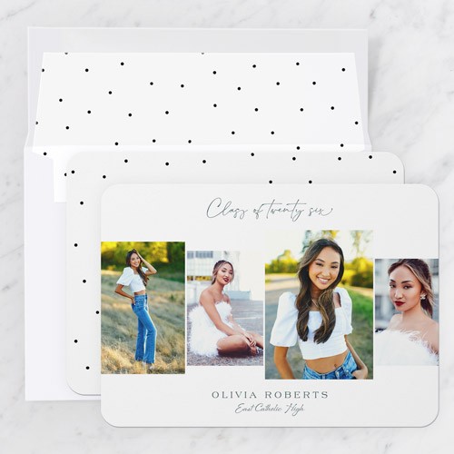 Celebrate the new graduate with this unique graduation announcement. Personalize with the graduate's name and the event details.