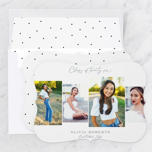Celebrate the new graduate with this unique graduation announcement. Personalize with the graduate's name and the event details.