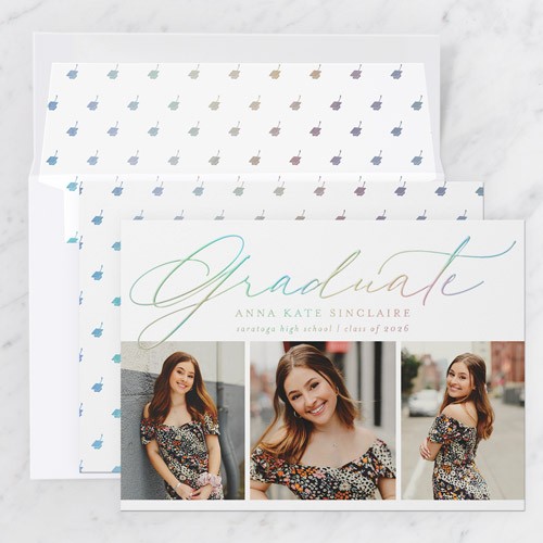 Celebrate the new graduate with this unique graduation announcement. Personalize with the graduate's name and the event details.