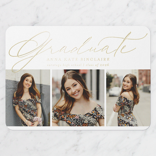 Celebrate the new graduate with this unique graduation announcement. Personalize with the graduate's name and the event details.