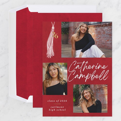 Celebrate the new graduate with this unique graduation announcement. Personalize with the graduate's name and the event details.