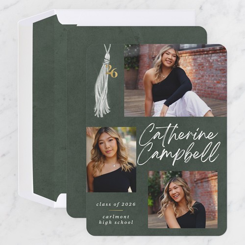 Celebrate the new graduate with this unique graduation announcement. Personalize with the graduate's name and the event details.