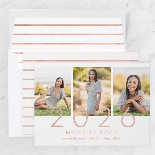 Celebrate the new graduate with this unique graduation announcement. Personalize with the graduate's name and the event details.