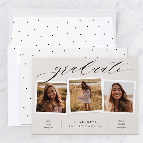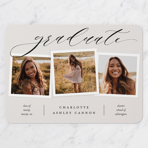 Celebrate the new graduate with this unique graduation announcement. Personalize with the graduate's name and the event details.