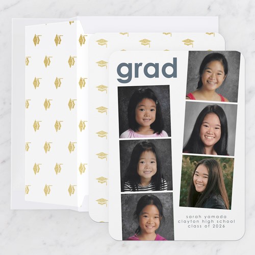 Celebrate the new graduate with this unique graduation announcement. Personalize with the graduate's name and the event details.