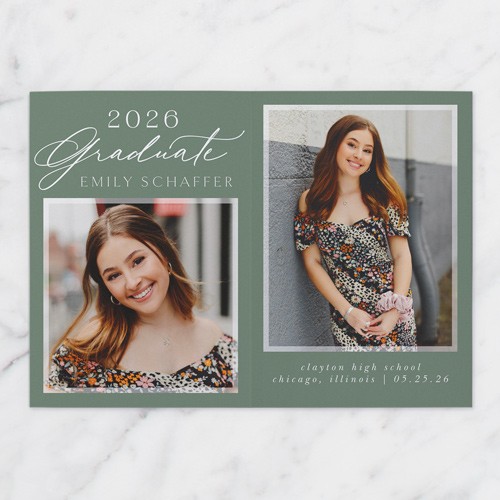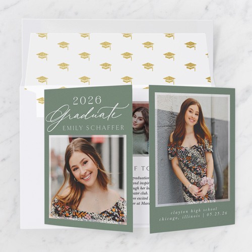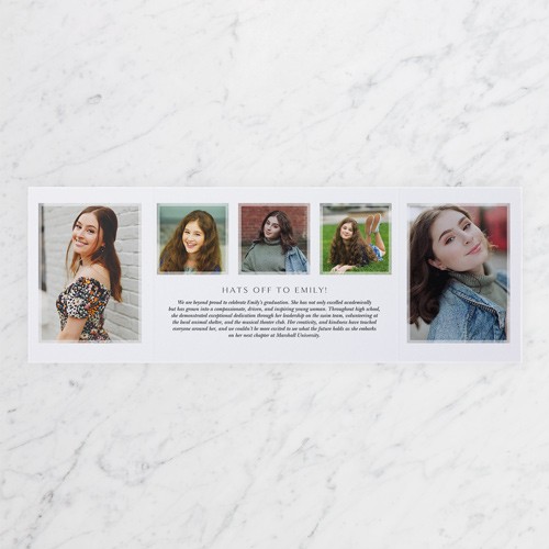 Celebrate the new graduate with this unique graduation announcement. Personalize with the graduate's name and the event details.
