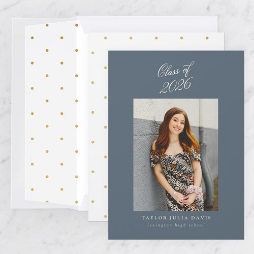 Celebrate the new graduate with this unique graduation announcement. Personalize with the graduate's name and the event details.
