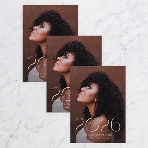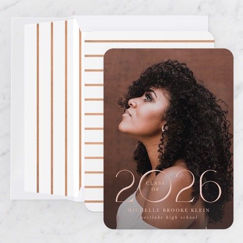 Celebrate the new graduate with this unique graduation announcement. Personalize with the graduate's name and the event details.