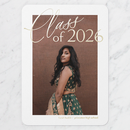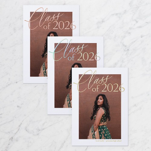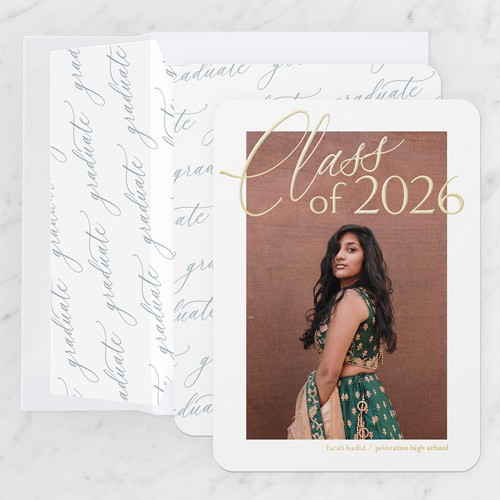 Celebrate the new graduate with this unique graduation announcement. Personalize with the graduate's name and the event details.
