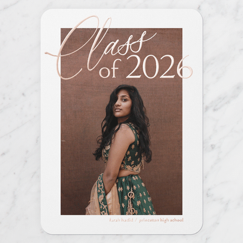 Celebrate the new graduate with this unique graduation announcement. Personalize with the graduate's name and the event details.