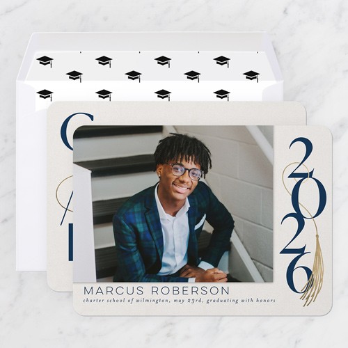 Celebrate the new graduate with this unique graduation announcement. Personalize with the graduate's name and the event details.