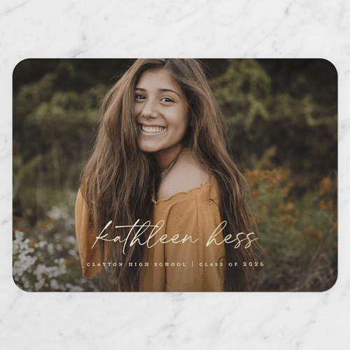 Celebrate the new graduate with this unique graduation announcement. Personalize with the graduate's name and the event details.
