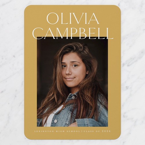 Celebrate the new graduate with this unique graduation announcement. Personalize with the graduate's name and the event details.