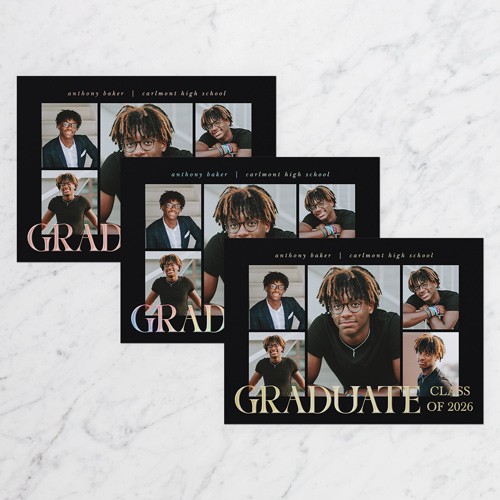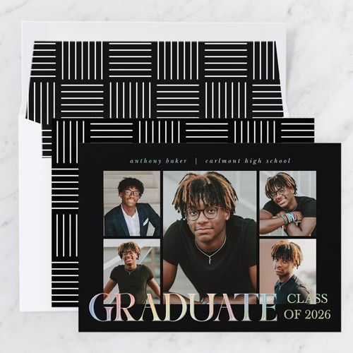 Celebrate the new graduate with this unique graduation announcement. Personalize with the graduate's name and the event details.